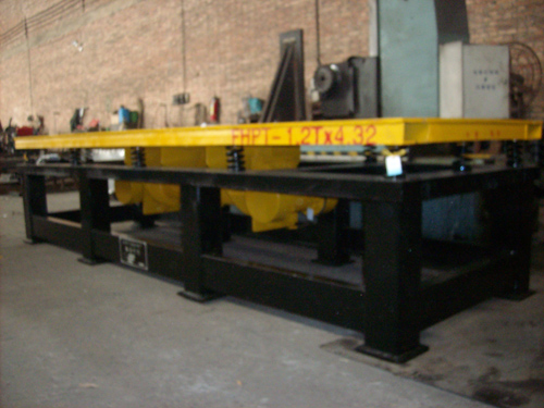 又叫振實(shí)臺(tái),主要用于物料的震實(shí),減少物料內(nèi)的空氣和縫隙.一般和振動(dòng)料斗配套使用。振動(dòng)平臺(tái)于生產(chǎn)流程中用于把顆粒、粉狀物料從散裝到塊狀、型狀等形式的轉(zhuǎn)變。采用電動(dòng)機(jī)作為優(yōu)質(zhì)振動(dòng)源,通過調(diào)節(jié)振動(dòng)電機(jī)激振力大小、來使平臺(tái)上物料實(shí)現(xiàn)理想的形式。該平臺(tái)的臺(tái)面與機(jī)座采用空氣彈簧連接,工作時(shí)噪音低,減振效果好。具有較好的工藝性和環(huán)保性。振動(dòng)平臺(tái)廣泛地使用在冶金、模具/食品、化工、建材等行業(yè)。振動(dòng)平臺(tái)為非標(biāo)產(chǎn)品,可按客戶要求設(shè)計(jì)。根據(jù)振動(dòng)平臺(tái)臺(tái)面承重選擇合適的振動(dòng)電機(jī)。