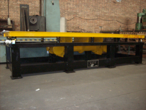 又叫振實(shí)臺(tái),主要用于物料的震實(shí),減少物料內(nèi)的空氣和縫隙.一般和振動(dòng)料斗配套使用。振動(dòng)平臺(tái)于生產(chǎn)流程中用于把顆粒、粉狀物料從散裝到塊狀、型狀等形式的轉(zhuǎn)變。采用電動(dòng)機(jī)作為優(yōu)質(zhì)振動(dòng)源,通過(guò)調(diào)節(jié)振動(dòng)電機(jī)激振力大小、來(lái)使平臺(tái)上物料實(shí)現(xiàn)理想的形式。該平臺(tái)的臺(tái)面與機(jī)座采用空氣彈簧連接,工作時(shí)噪音低,減振效果好。具有較好的工藝性和環(huán)保性。振動(dòng)平臺(tái)廣泛地使用在冶金、模具/食品、化工、建材等行業(yè)。振動(dòng)平臺(tái)為非標(biāo)產(chǎn)品,可按客戶要求設(shè)計(jì)。根據(jù)振動(dòng)平臺(tái)臺(tái)面承重選擇合適的振動(dòng)電機(jī)。